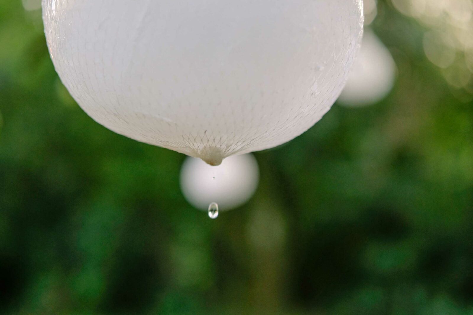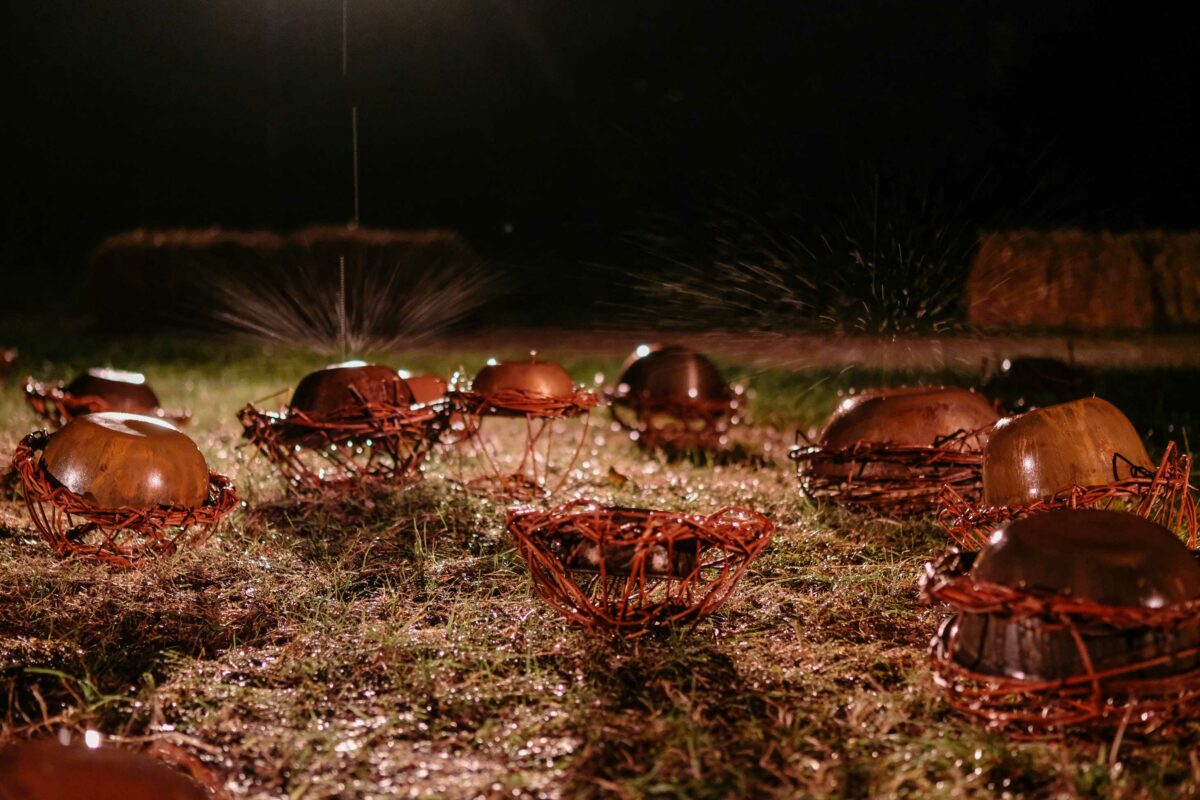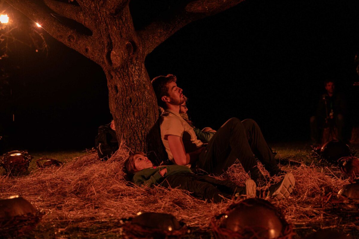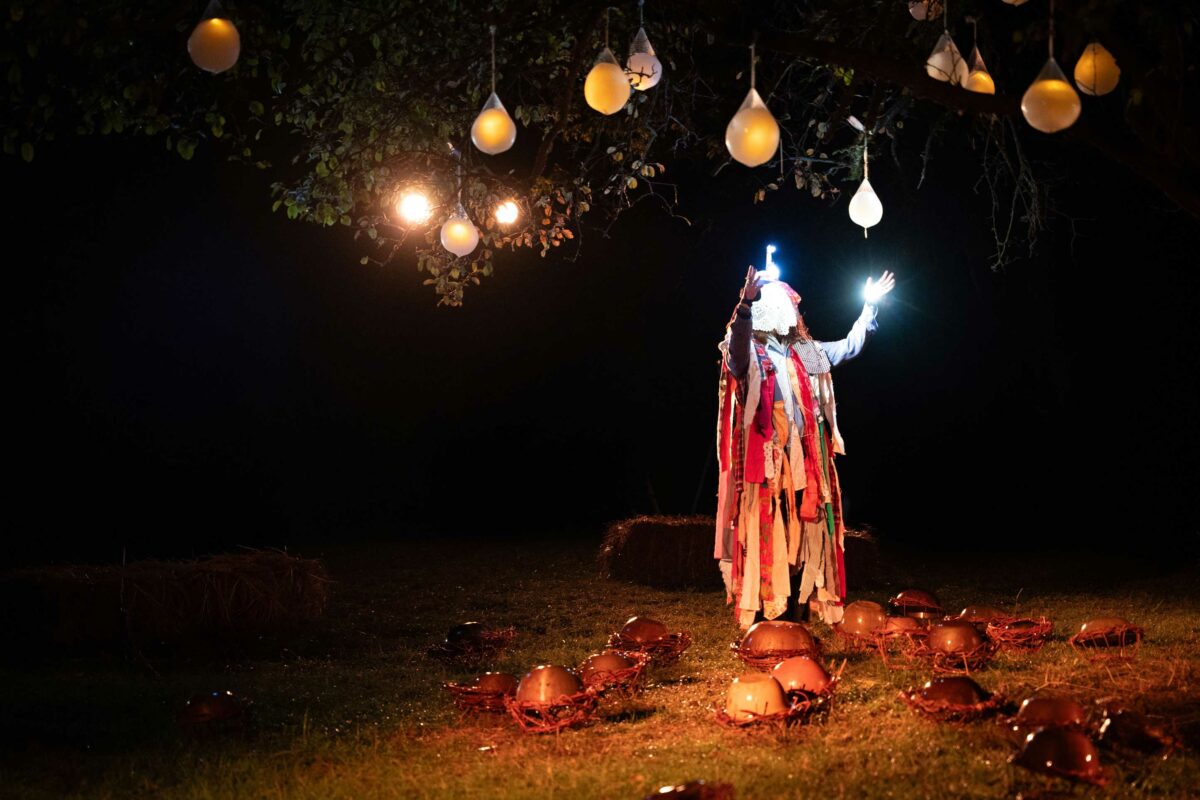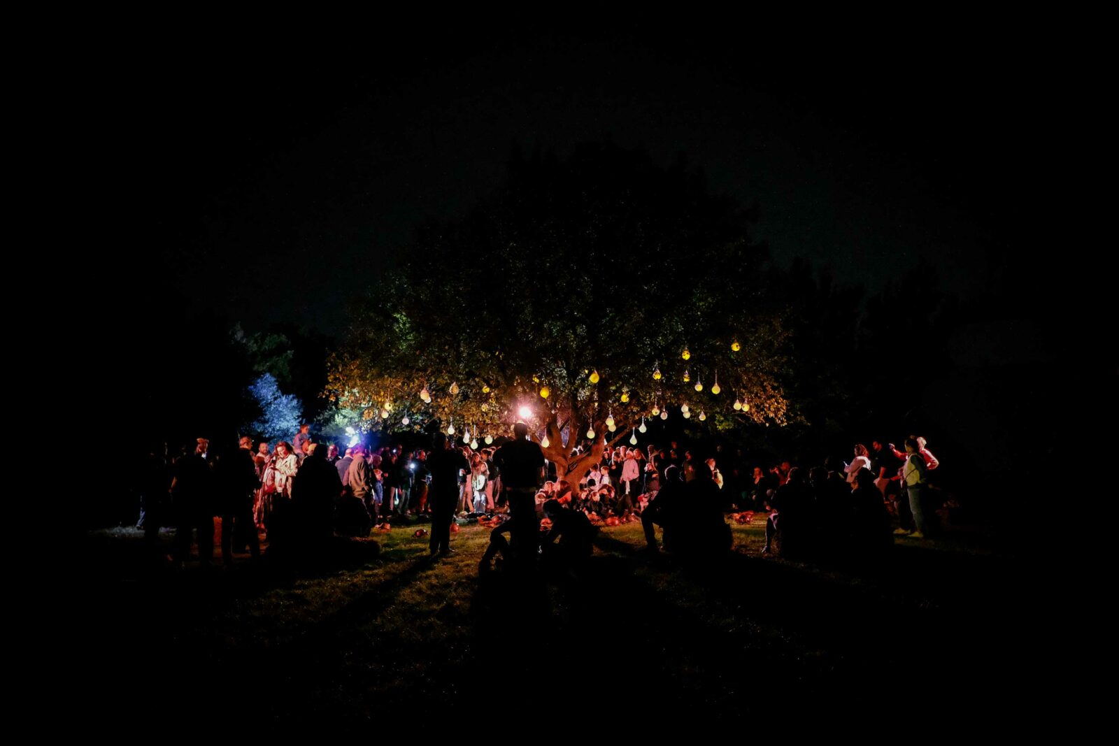 Ces fruits lumineux sont faits de glace, leur fonte marque le temps qui passe, goutte après goutte. Le temps d’une nuit, ils illuminent les branches, nous invitent à plonger dans nos souvenirs et à écouter le présent. Une invitation à contempler l’arbre et à lui tendre l’oreille, à écouter la nuit et ses secrets.