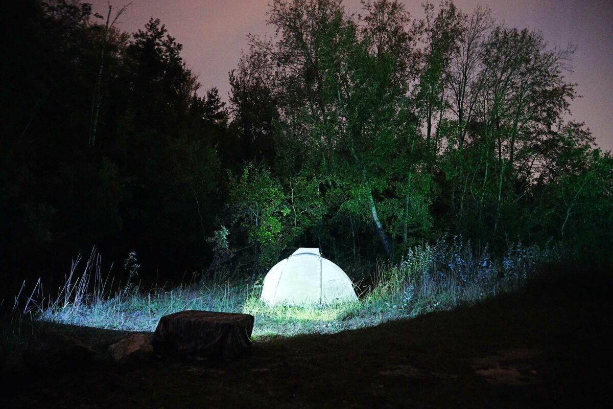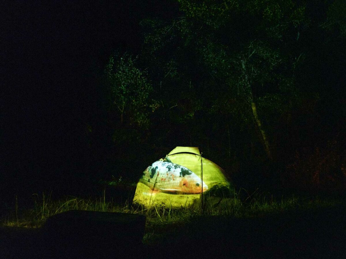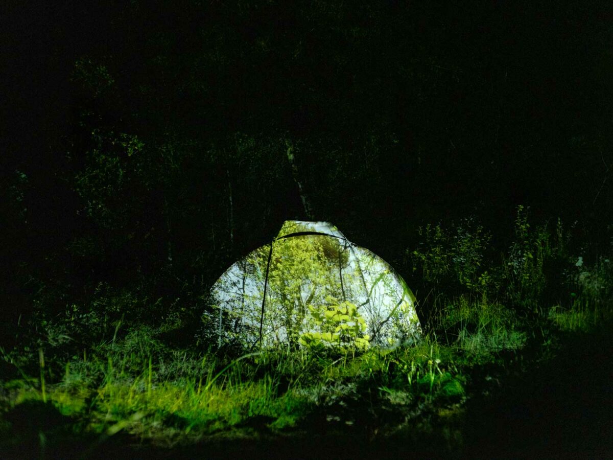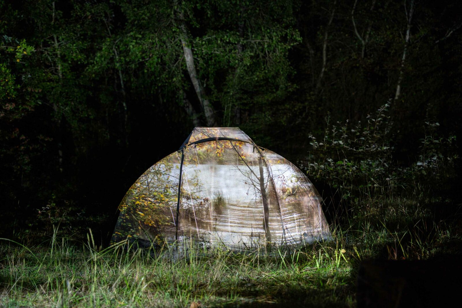 Constituée de deux installations vidéo monumentales, Pourvu qu’il fasse beau est imaginée comme une expérience paysagère immersive, dans une clairière et dans un lac, pour révéler ce qui n’existait pas ici avant. Il est aussi question de relier le lac et la forêt, l’eau et le ciel, et dans un mouvement d’adaptation, de faire aimer la pluie et le vent autant que le beau temps.